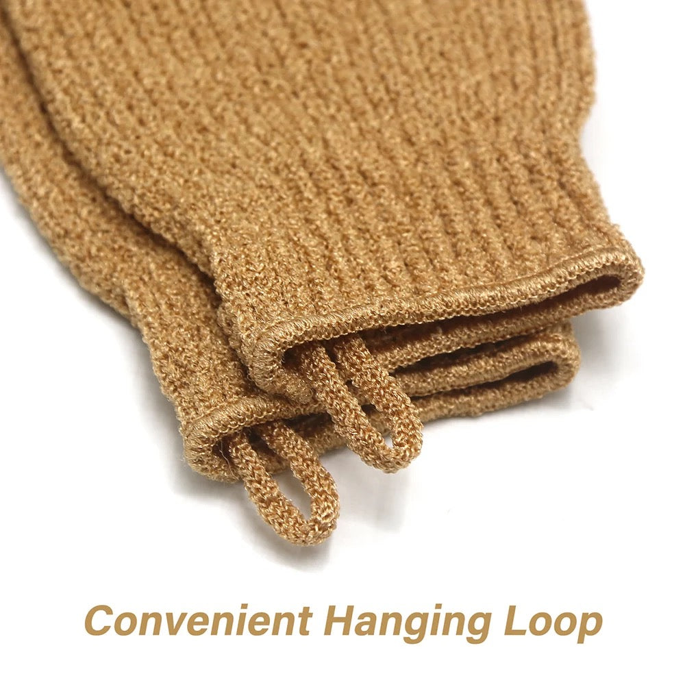 - 【Universal Size Exfoliating Gloves Function】Exfoliating gloves are highly flexible, one size can be stretched to fit most hands size, Women's exfoliation gloves promote healthy skin and activate blood circulation. Our exfoliating body glove helps you combat acne, rashes, eczema and etc. Can eliminate dry, flaking or dead skin cells. Unblock pores and reduce cellulite appearance. Perfect for exfoliating the neck, shoulders, feet and more